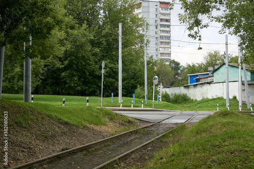 Railway rails in the greenery of urban thickets