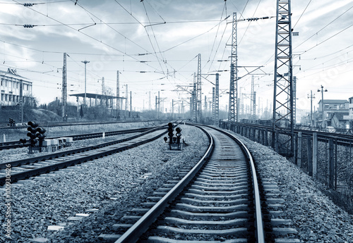 Railway transportation hub, gray tone image.
