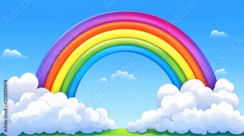 Rainbow arching over a field with clouds, symbol of hope and beauty, vibrant rainbow