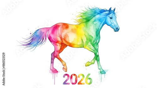 Rainbow Horse Watercolor Illustration for 2026