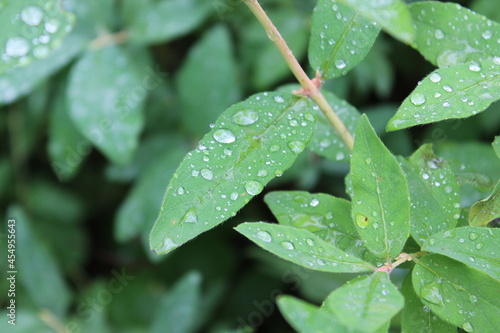 Raindrops on green leaves. Macro. Russia.
