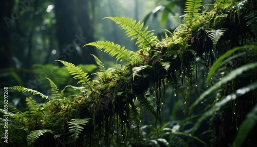 Rainforest ferns on moss