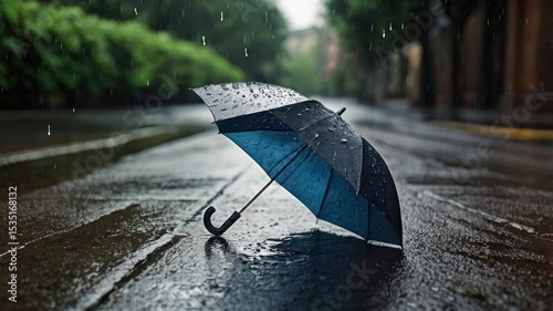 Rainy city street with umbrella