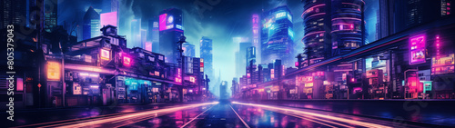 Rainy Night in Cyberpunk City - Neon Streets and Reflections