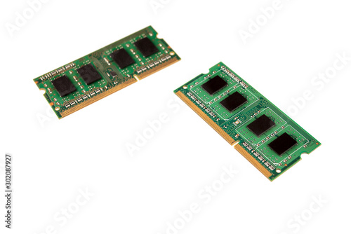 RAM, operative memory for notebook or laptop computer, monoblock, isolated on white background, selective focus