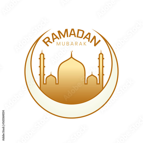 Ramadan Mubarak with Mosque and Moon Golden Decorative Greeting Vector Design