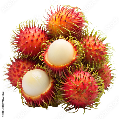 Rambutans whole and peeled isolated on a white background. Ai generated