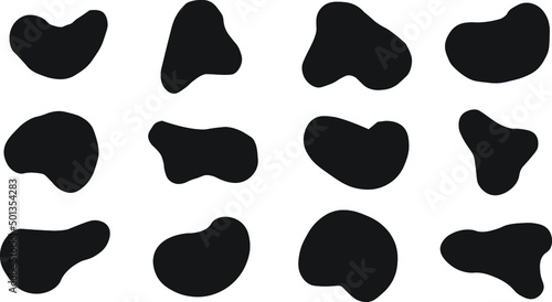 Random blotch, inkblot. Organic blob, blot. Random blob organic geometric round pattern isolated on white background. Set of abstract ink blotch, round liquid blot inkblot shape