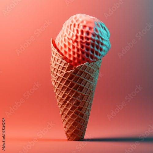 Raspberry ice cream, strawberry flavoured ice cream in a delicious waffle cone