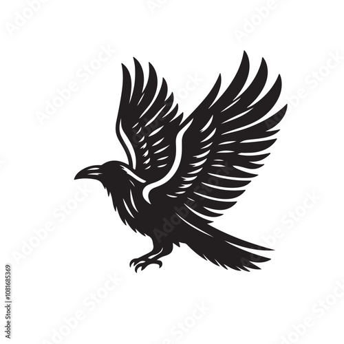 Raven or crow silhouette vector design. Raven vector illustration. Crow or raven logo, icon balck and white.