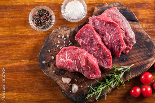 Raw beef steak on a cutting board