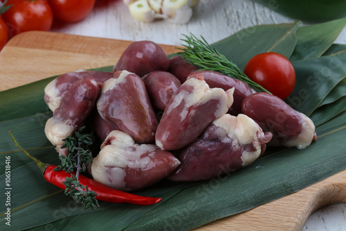 Raw chicken hearts