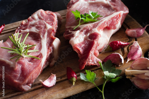 Raw pork steaks