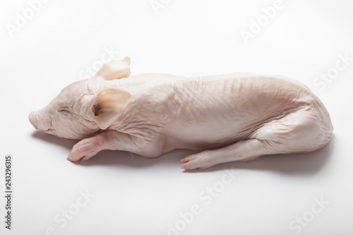Raw suckling pig on a light background
