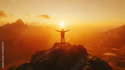 Reaching the Summit: A Silhouette of Triumph Against a Golden Sunset