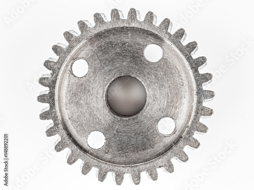real brass metal gear on white background