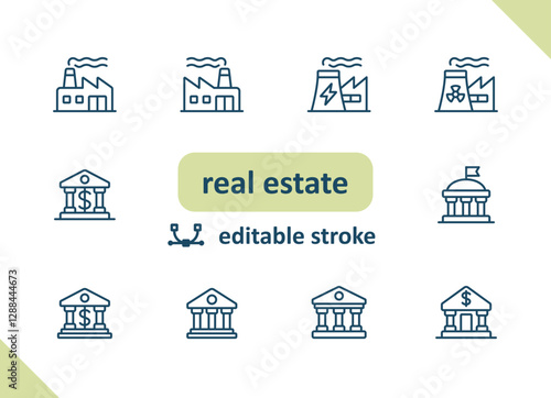 Real estate icons. House, buildings, home vector icon set