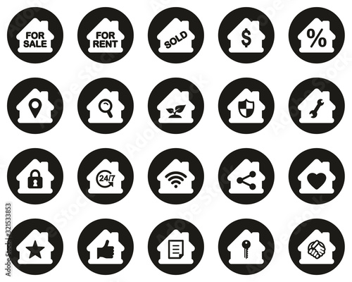 Real Estate Icons White On Black Flat Design Circle Set Big