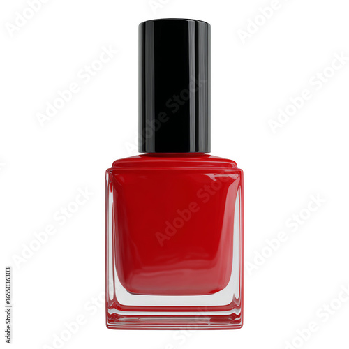 Realistic 3D Render of a Classic Red Nail Polish Bottle on a Transparent Background