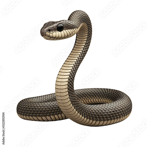 Realistic 3D-Rendered Snake Coiled on White Background