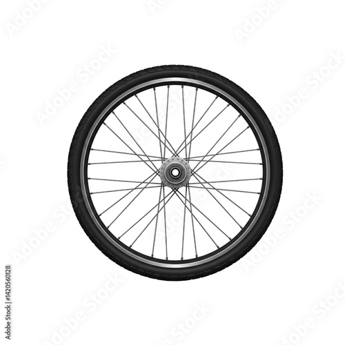 Realistic bicycle wheel with tire and spokes on transparent background, great for transport, cycling, mechanics, motion, and sports-themed visuals.