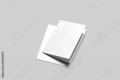 Realistic Bi-fold Brochure or invitation Mock-up isolated on Gray Background. 3D illustration.