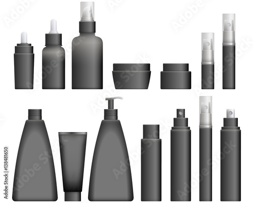 Realistic black Cosmetics bottles