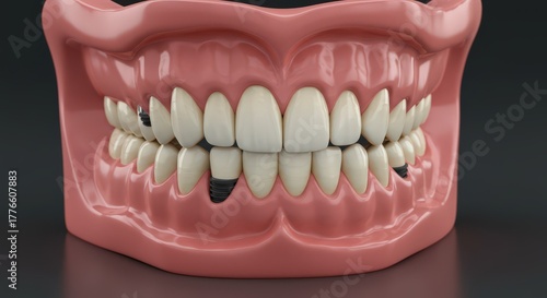 Realistic dental model demonstrating missing teeth and gum recession in a human jaw