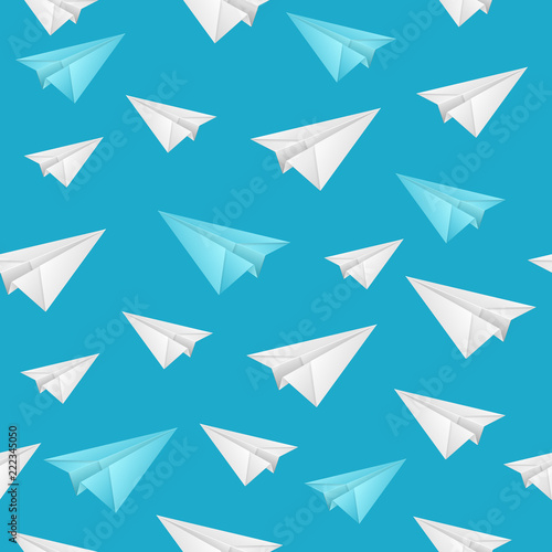 Realistic Detailed 3d Paper Aircraft Seamless Pattern Background. Vector