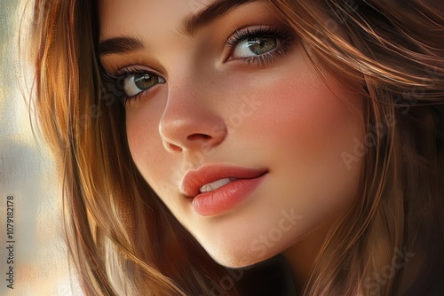 Realistic Digital Portrait of a Woman with Long Hair and Expressive Eyes