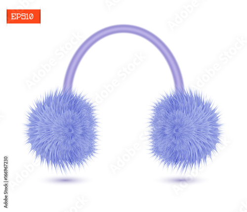 Realistic furry winter headphones isolated on white. Vector illustration