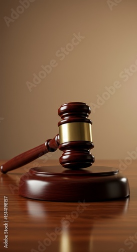 Realistic Gavel Image On Wooden Desk With Justice Symbolism For Law Court