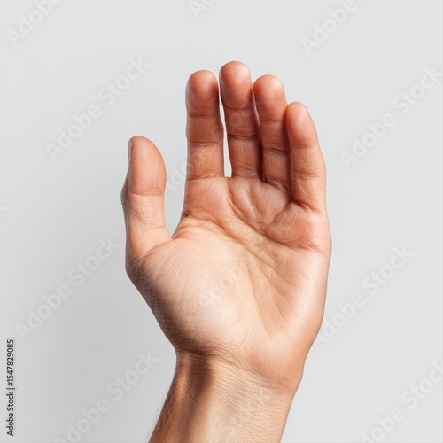 realistic human hand cupped upward with empty palm for product display on white background