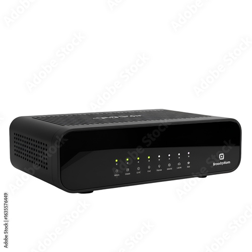 Realistic Illustration of a Black Network Router Device on a Transparent Background