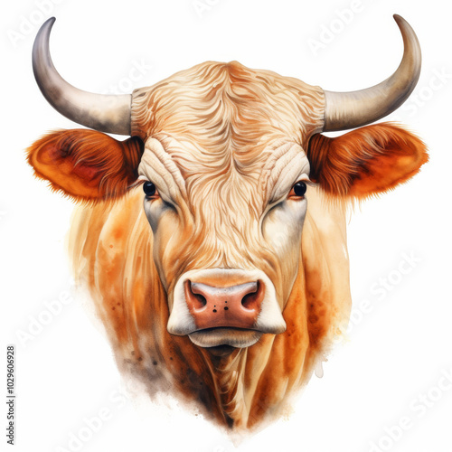 Realistic Illustration of a Brown Cow with Large Horns in High Detail