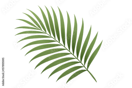 Realistic illustration of a single green palm leaf isolated on a transparent background, perfect for summer and tropical-themed projects