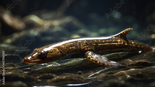 "Realistic Illustration of an Eel Fish in Curved Swimming Pose on Transparent Background"