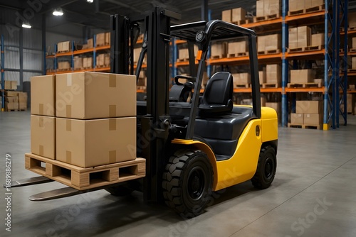 Realistic Industrial Forklift Operating in Modern Warehouse