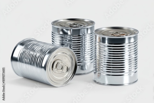 Realistic metal cans arranged on a transparent background showcasing their shine and design details for design and advertisement purposes