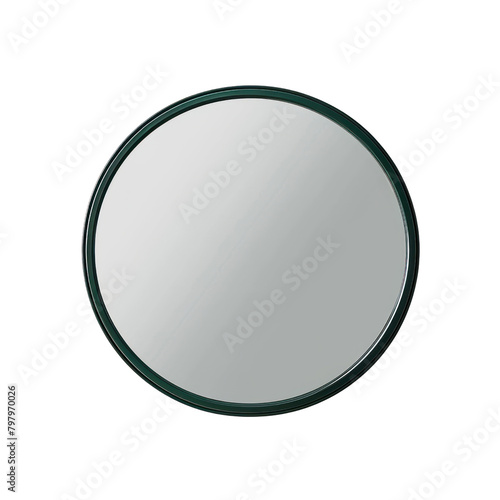 Realistic mirror with dark green frame isolate on transparent png.
