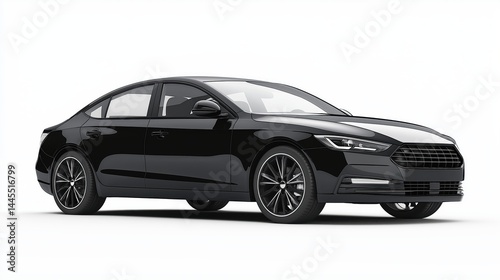 Realistic mockup of a modern black sedan car, side view, isolated on white background