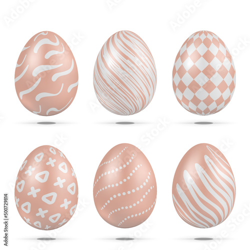 Realistic Pink Easter Eggs with Pattern Set.