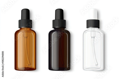 Realistic spray glass bottle mockup with white and black cap. Isolated on white background. For perfume spray and beauty products.