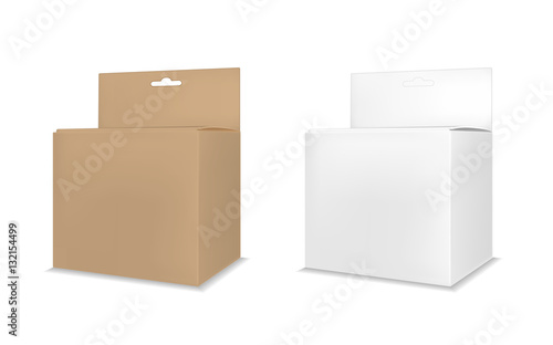 Realistic transparent paper or plastic packaging box with hanging hole
