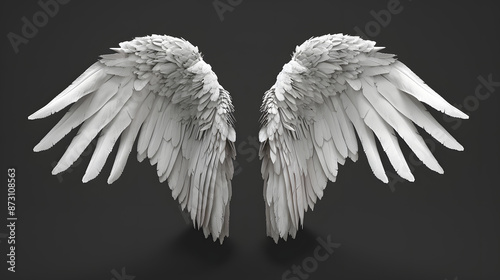 Realistic white angel wings isolated on solid black background. isolated on a solid black background. Illustrations