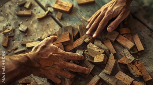 Rebuilding Resilience Hands Amidst Scattered Wooden Blocks