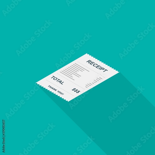 Receipt paper, bill check, invoice, cash receipt. Left view isometric icon.
