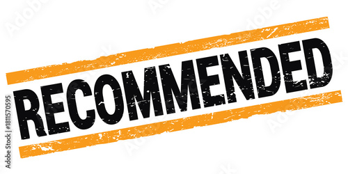 RECOMMENDED text on black-orange rectangle stamp sign.