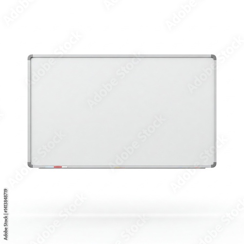 Rectangular magnetic whiteboard isolated on white background for office or classroom use