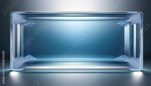 rectangular transparent glass frame with glossy reflections and silver border for modern ui design